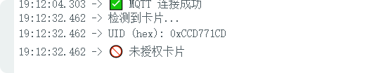 Serial.println("🚫 未授权卡片");
